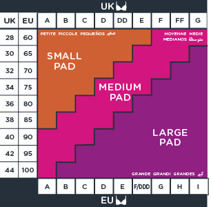 Nincs több kör alakú betét, ami kikandikál a melltartóból. Az új Made for Me melltartóbetétek egyedi formával és többféle méretben készültek, hogy tökéletesen illeszkedjenek. A lenti mérettáblázat és a melltartó méret segítségével könnyen meghatározható, hogy S, M, vagy L méret lesz a megfelelő, biztosítva a tökéletes illeszkedést.