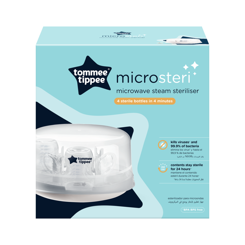 4 db cumisüveget képes egyszerre sterilizálni, akár 4 perc alatt. A nehezen elérhető helyeken, a mosogatás után esetlegesen ott maradt baktériumok 99,9%-át elpusztítja.
