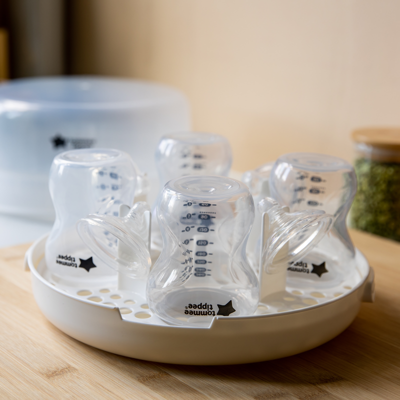 A mikrohullámú gőzsterilizáló hatékony segítséget nyújt a szoptatási és etetési eszközök megfelelő higiéniájának biztosításához.