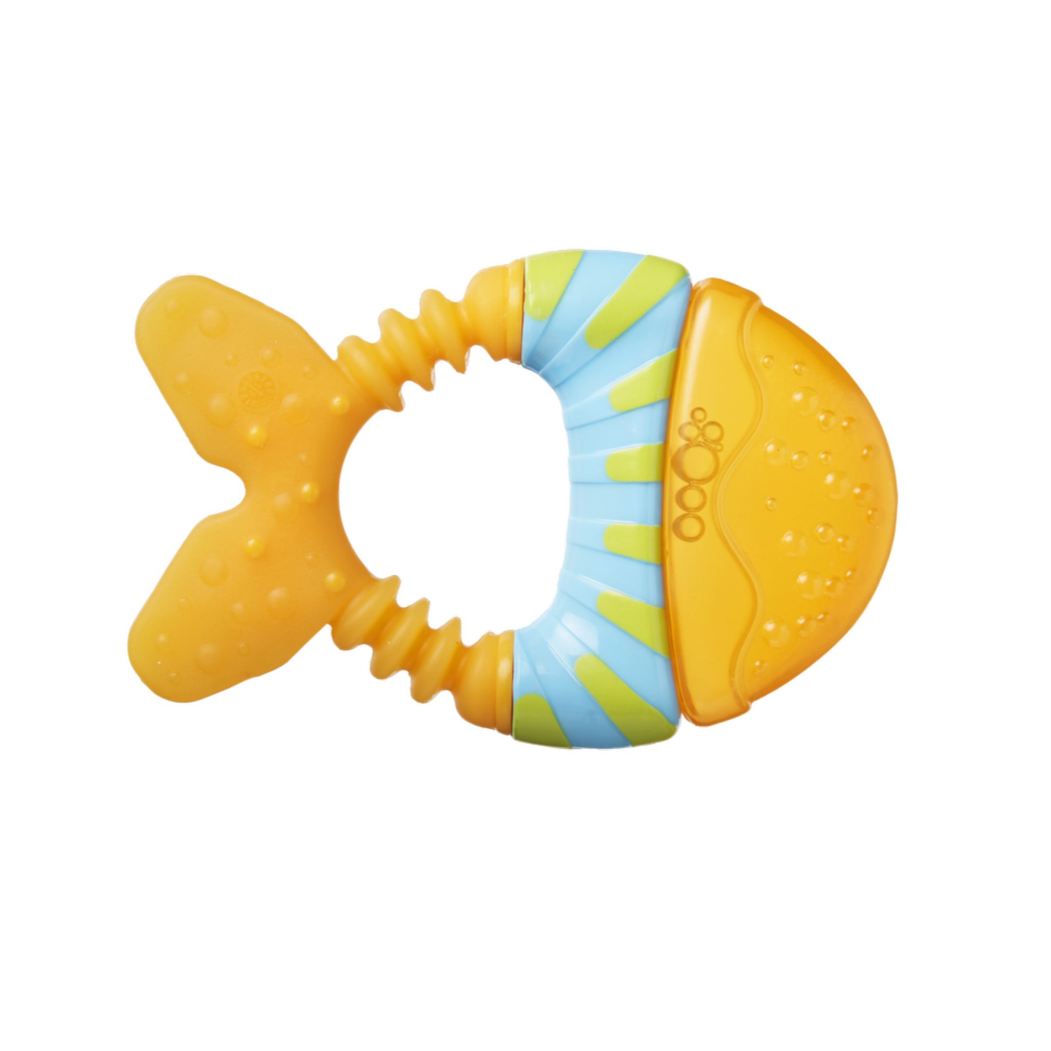 Teethe ’n’ cool rágóka aranyos halacska alakjával és könnyű súlyával könnyedén megfogható a kis kezek számára.
